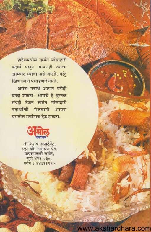 हॉटेलमधील खमंग मांसाहारी पदार्थ पाहून आपणही त्याचा आस्वाद घ्यावा असे वाटते. परंतु खिशाला ते परवडणारे नसते. असेच पदार्थ आपण घरीही बनवू शकता. आमचे हे पुस्तक संग्रही ठेऊन खमंग मांसाहारी पदार्थांची मेजवानी आपण घरातील सर्वांनाच देऊ शकता.