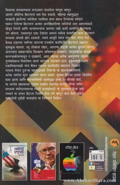 मुळात हिटलर इतका लोकप्रिय कसा झाला आणि त्याच्याविषयी आजसुद्धा इतकं का बोललं जातं, या अत्यंत महत्त्वाच्या मुद्द्याचा सखोल ऊहापोह अत्यंत सोप्या भाषेत सगळ्या वयोगटामधल्या मराठी वाचकांसाठी या पुस्तकात केला आहे. नव्यानं या जगात हिटलर निर्माण होऊ नये म्हणून काय केलं पाहिजे, यासाठीची दृष्टीही वाचकांना या निमित्तानं मिळेल!